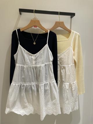 インナーは、タートルネックや袖がフリルになってるトップスと組み合わせるのも良いかと思います。