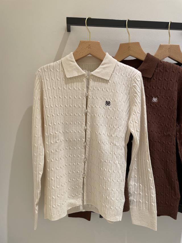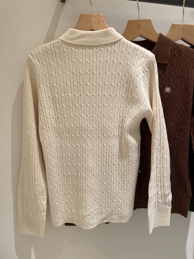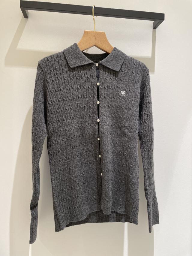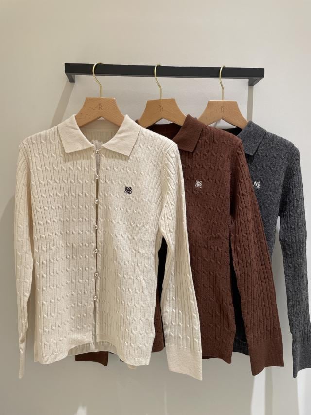 ポロ衿ケーブルカーディガン