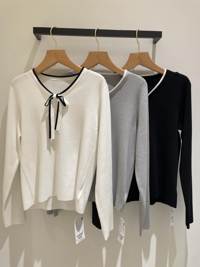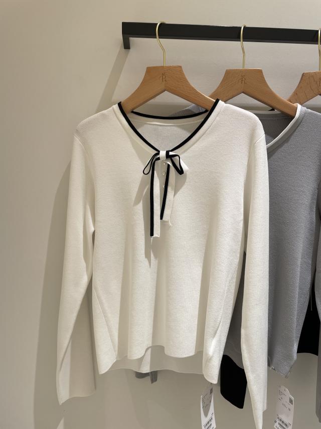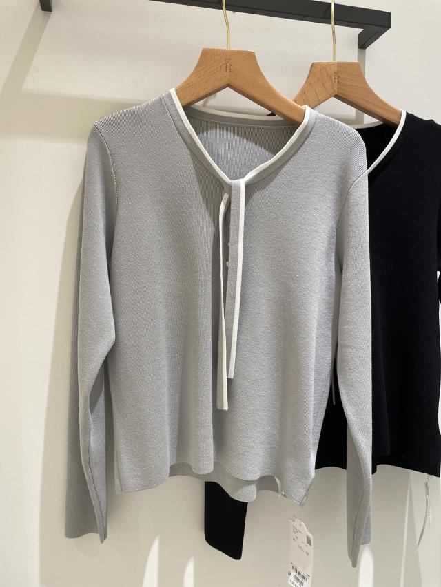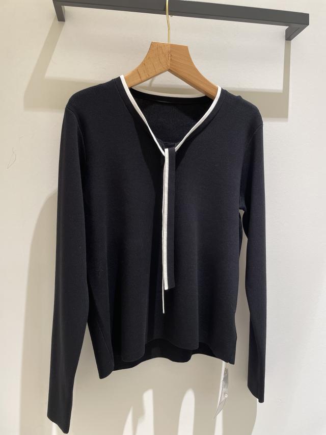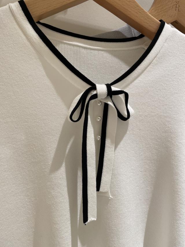 【インナー使いにおすすめ】配色リボンパールニット
