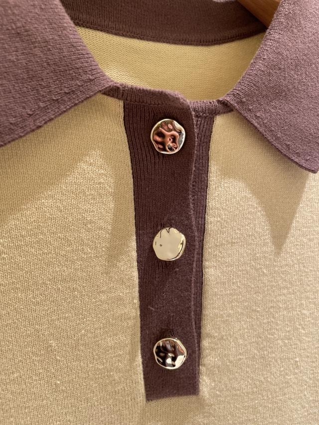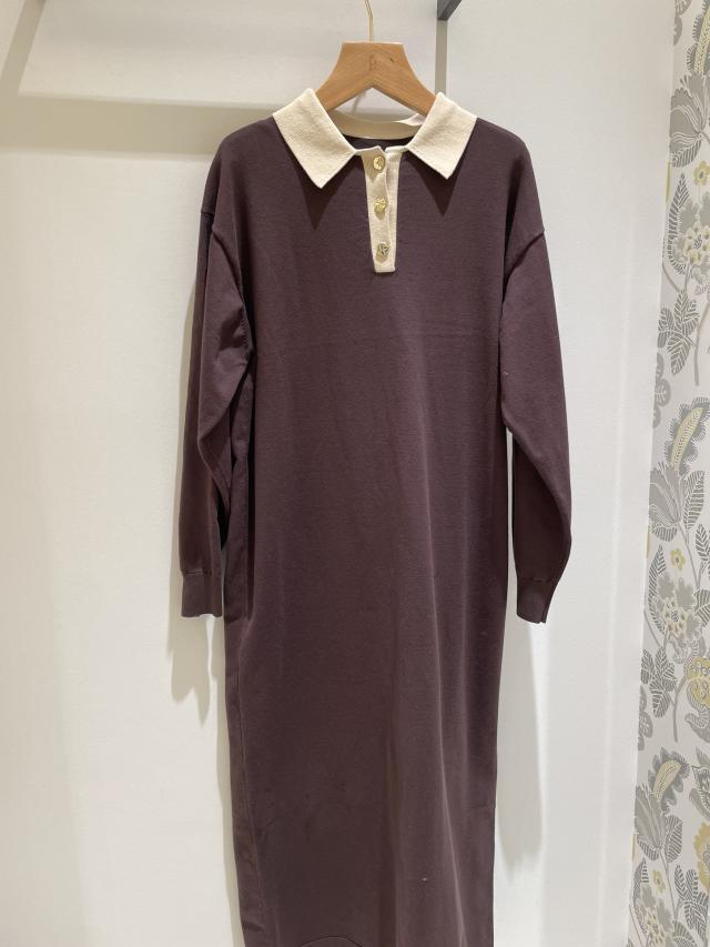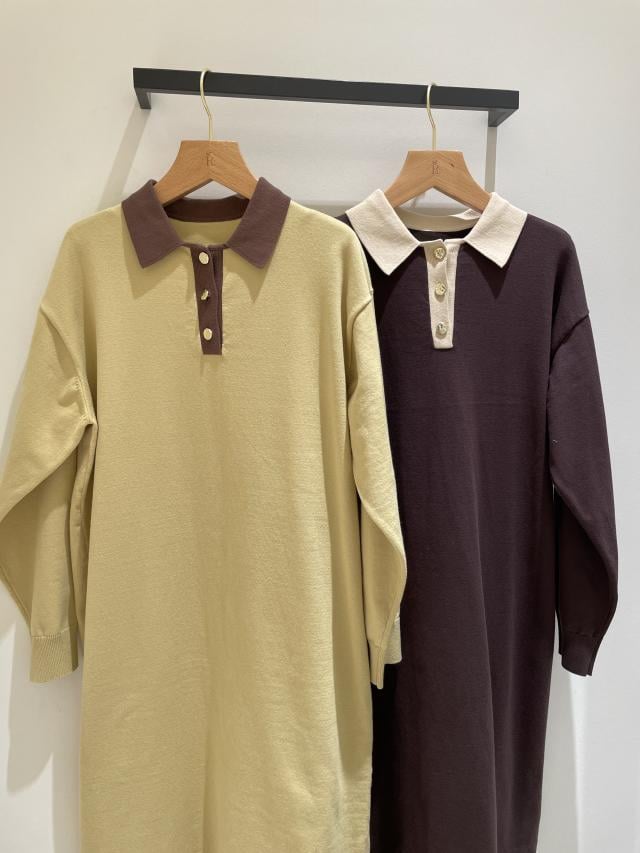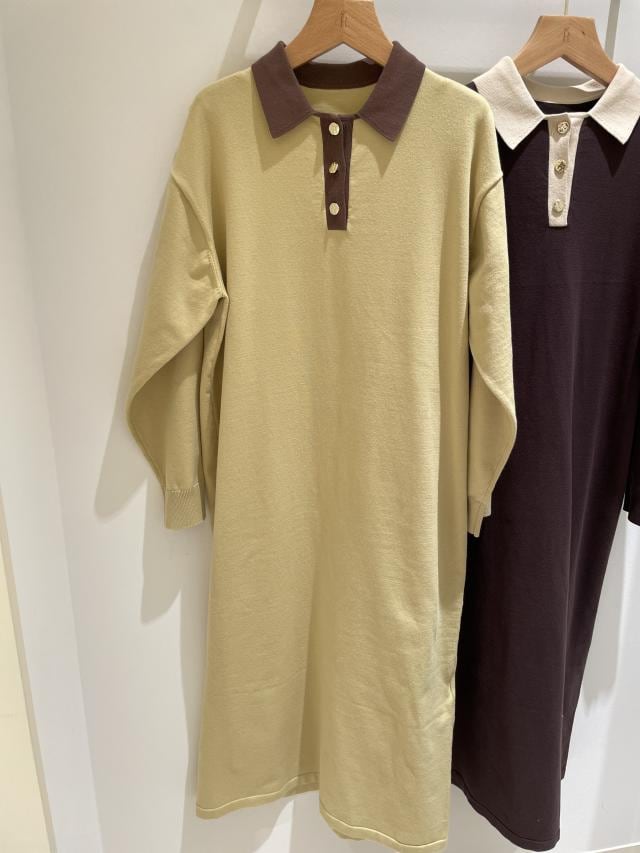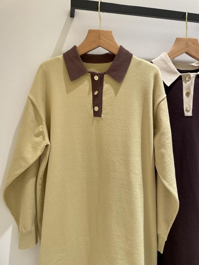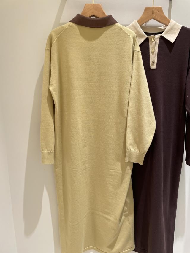 配色スキッパーニットワンピース