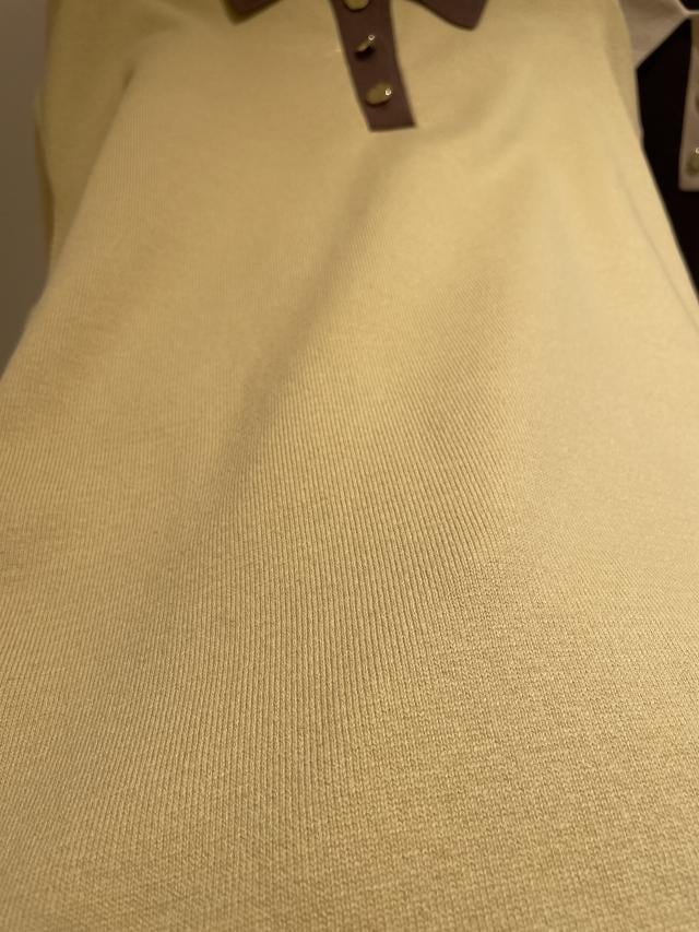 襟とゴールドのボタンが付いているので、カジュアル過ぎない着こなしができると思います。