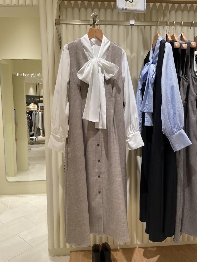 インナーを変えるだけで、雰囲気を簡単に変えることができます。ボタンを全部開けてジレベストのように着るのがおすすめです。