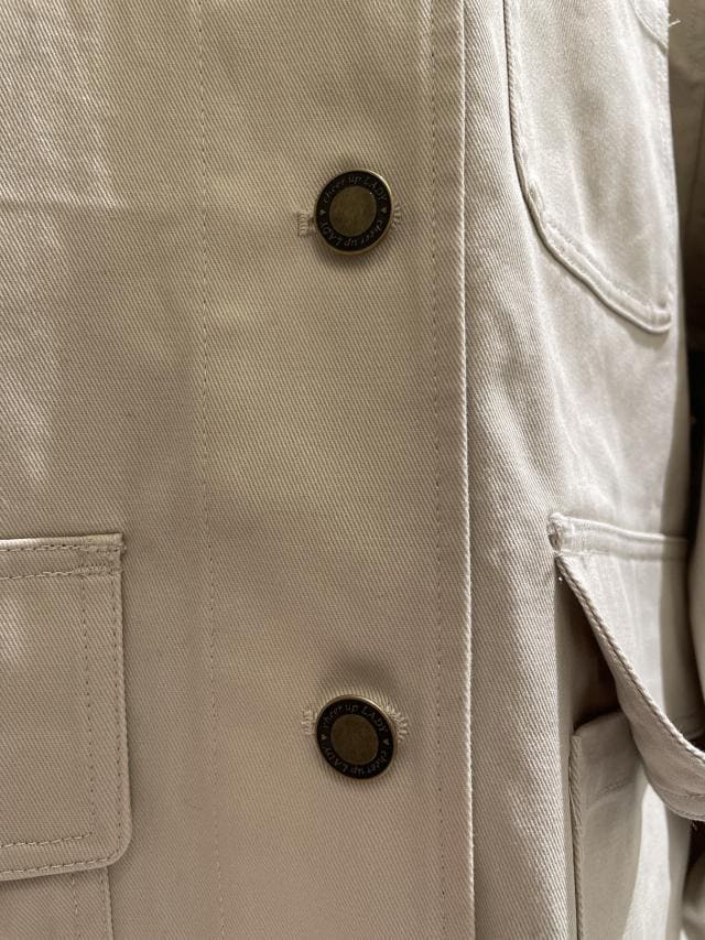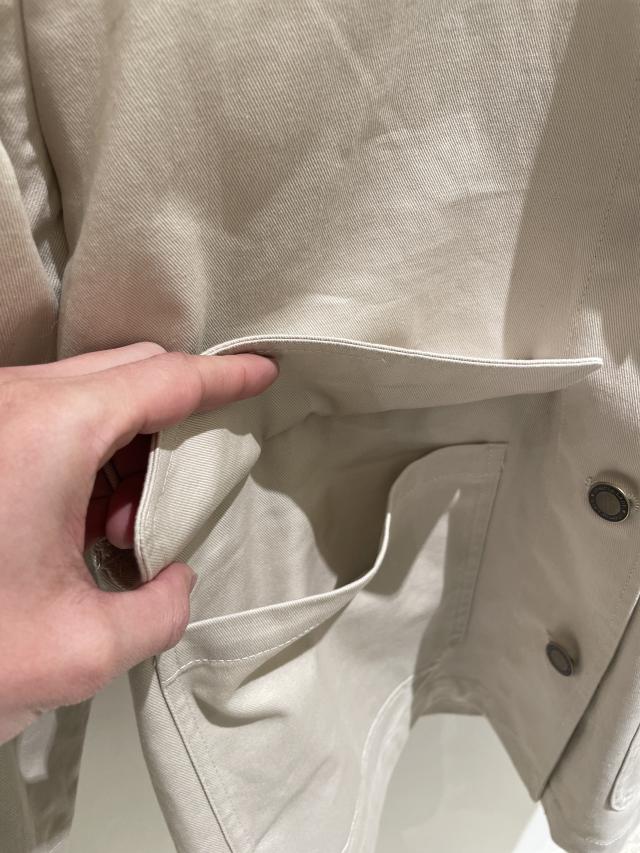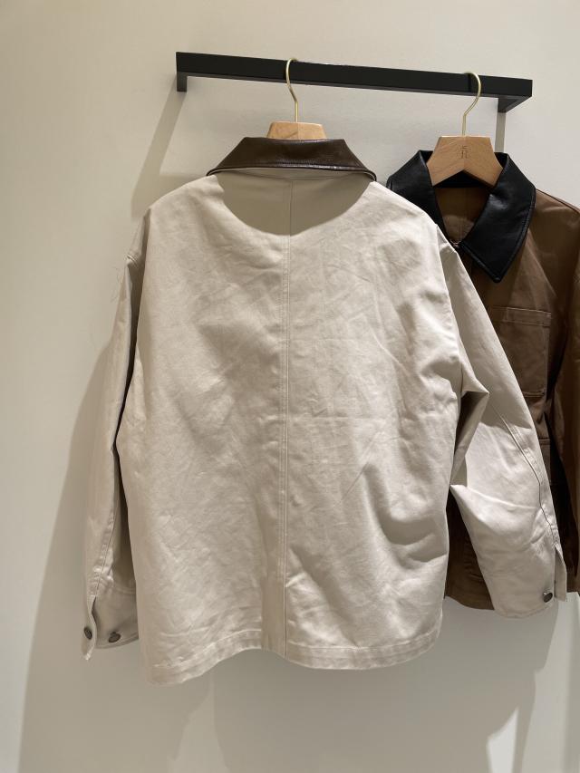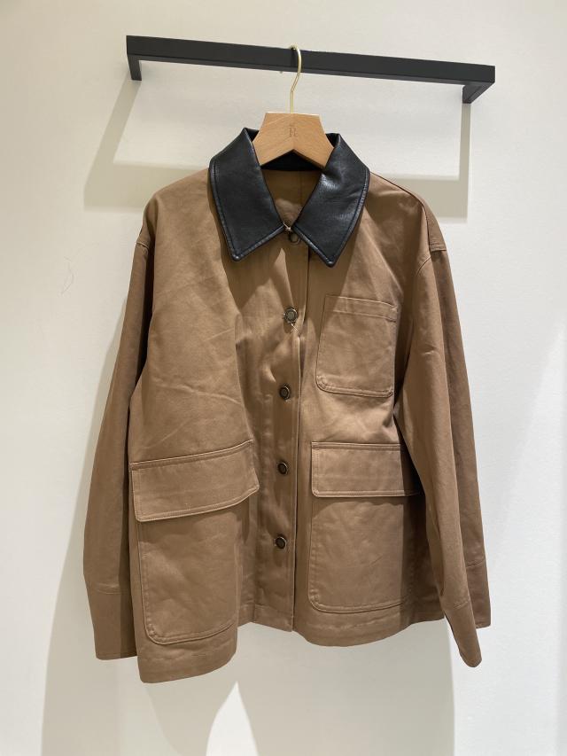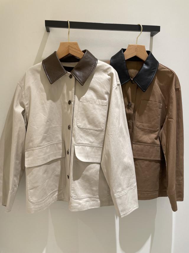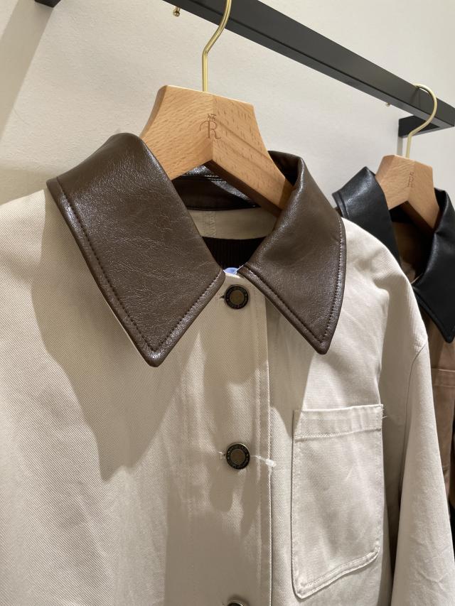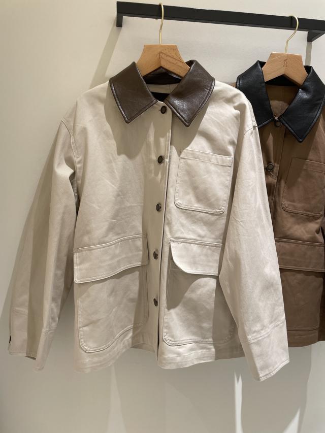 襟は合皮素材なので、カジュアルすぎずない着こなしが可能です。