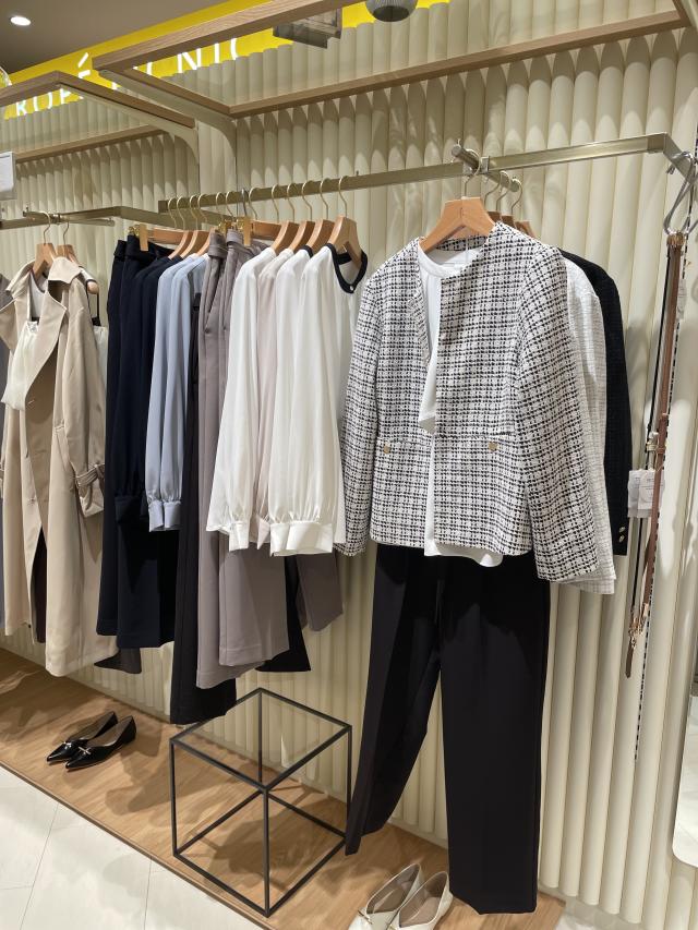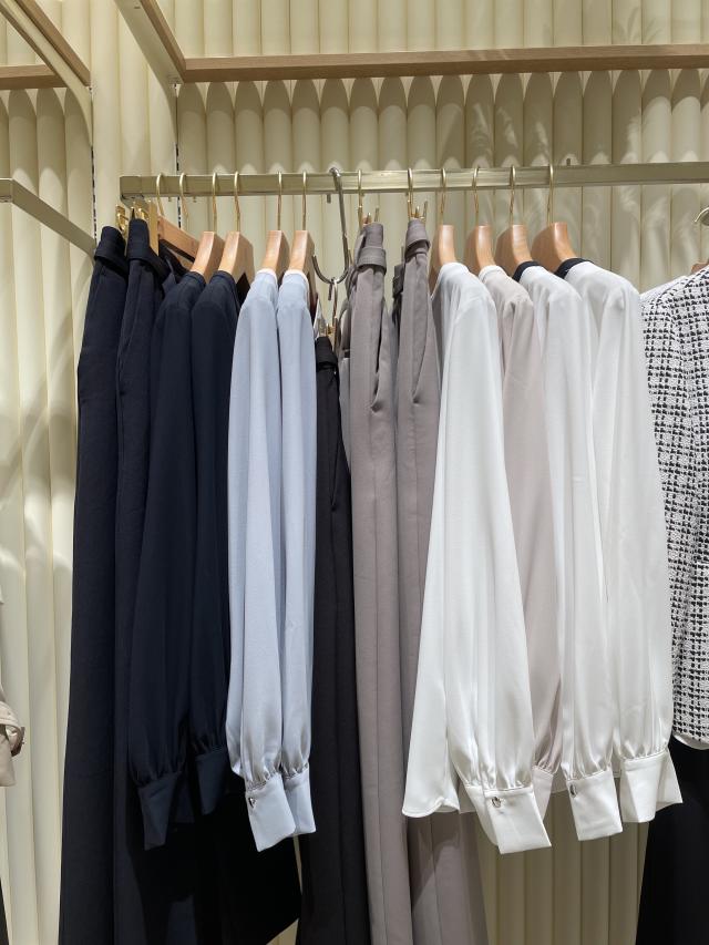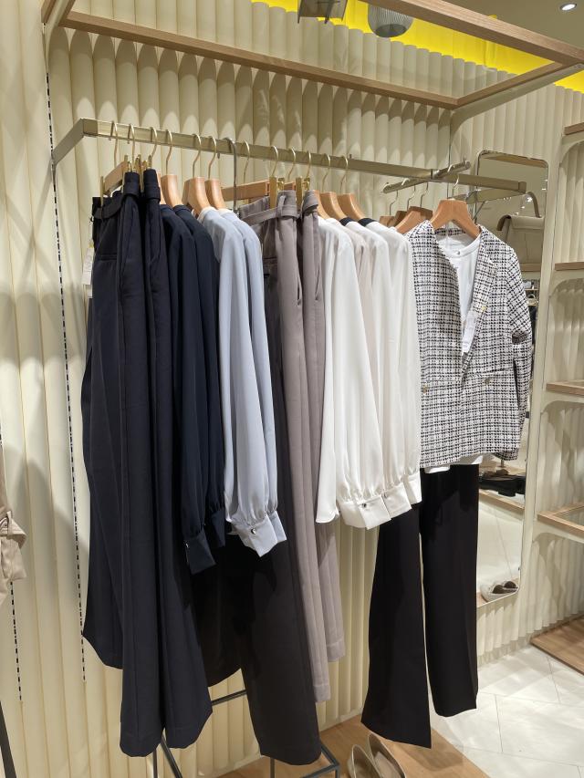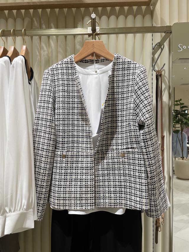 ジャケットやカーディガンのインナー、パンツはスラックスにするのが、おすすめのスタイリングです。