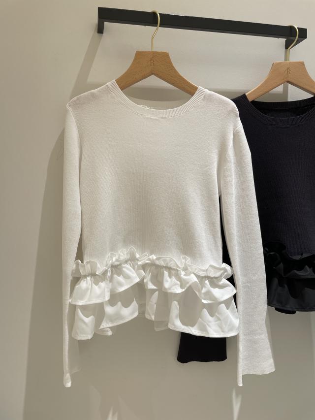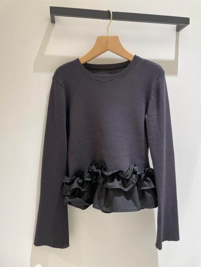 丈が短めなので、ハイウエストデニムやスラックスと合わせたスタイリングがおすすめです。