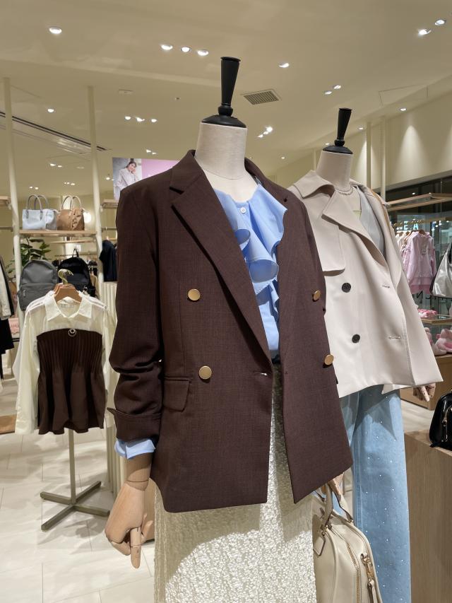 ショート丈なので、ボタンを全部閉めても胴が長く見えず、スタイル良く見えます。