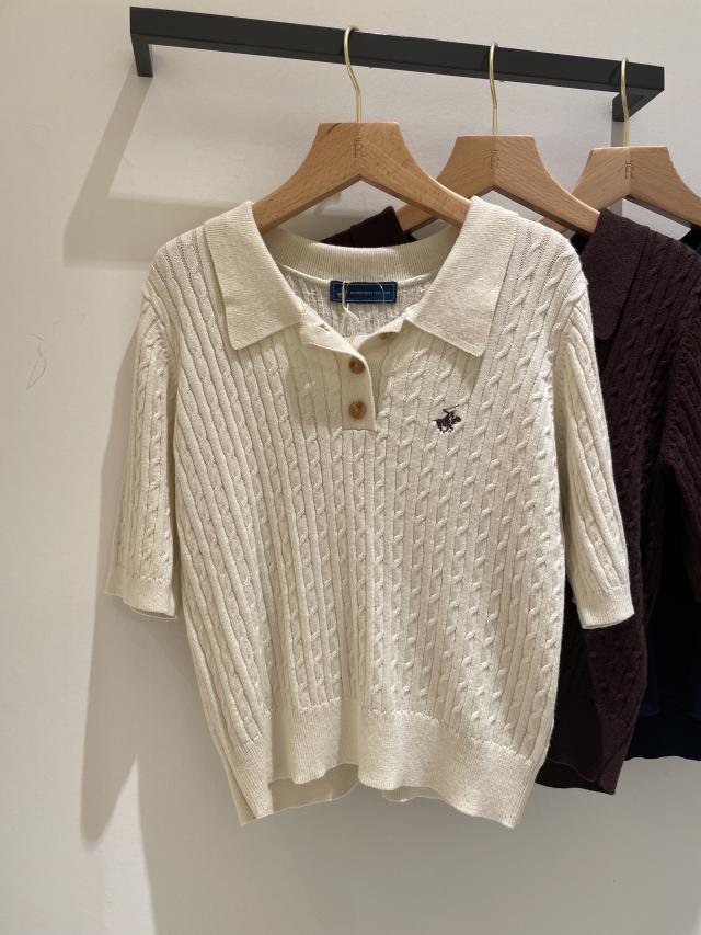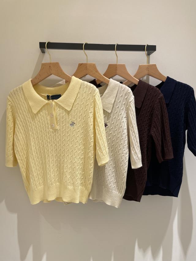 【BEVERLY HILLS POLO CLUB別注】ポロカラーケーブルニット/リンクコーデ