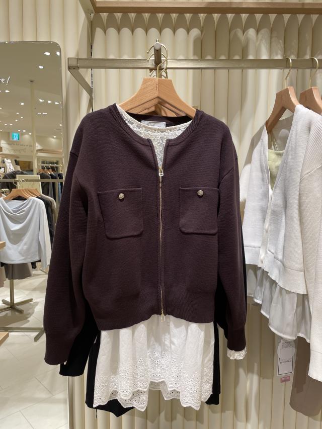 カジュアルすぎないカーディガンで、ダブルジップの仕様なので、シャツやレースロンTなどを好きな分だけ見せることができ、重ね着を楽しむことができます。