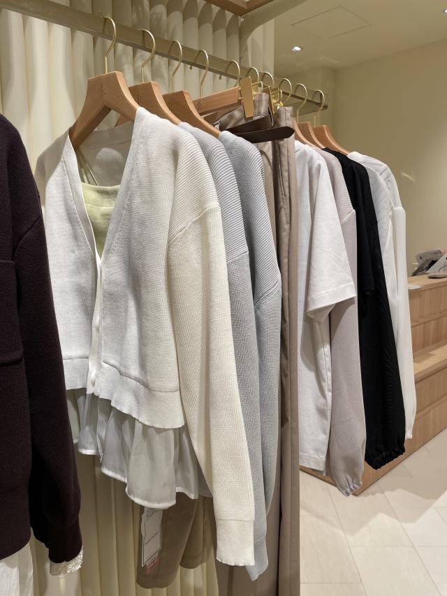 一見シンプルですが、シフォン素材を組み合わせているので、シンプルになりすぎず、大人の方でも挑戦しやすいカーディガンです。