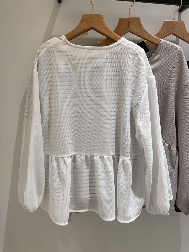 広がりすぎないペプラムデザインで、どの年代の方にも馴染みやすい1枚です。