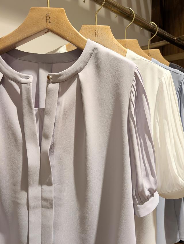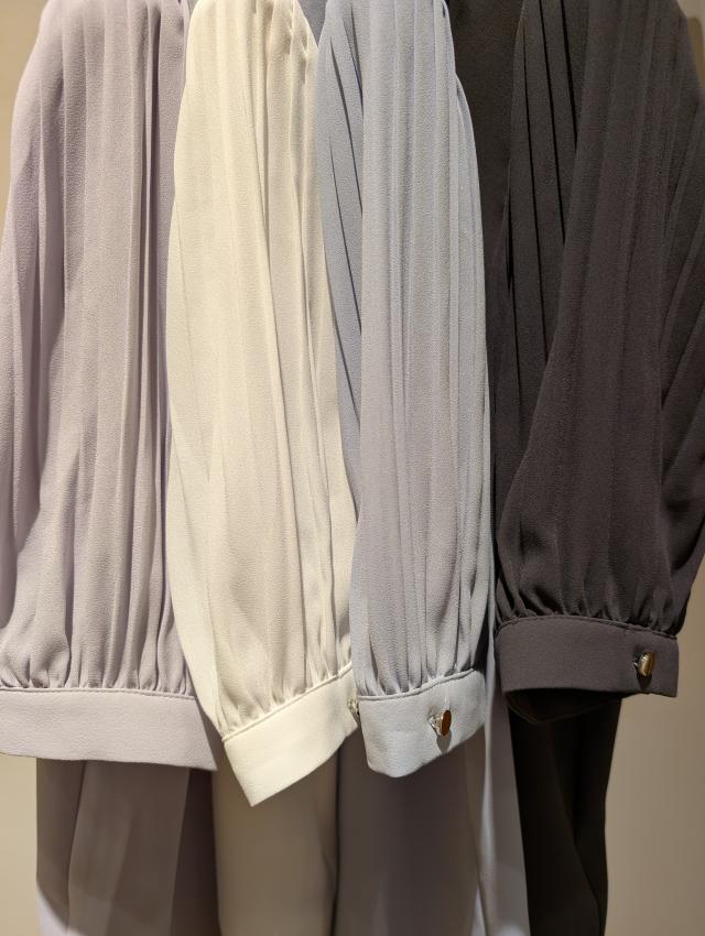お袖のプリーツがマンネリしがちなオフィスコーデに鮮度を出してくれるブラウスです!