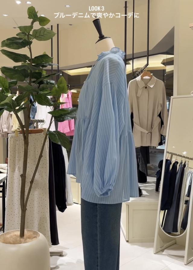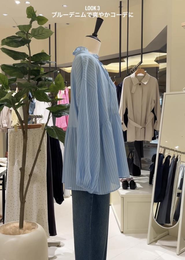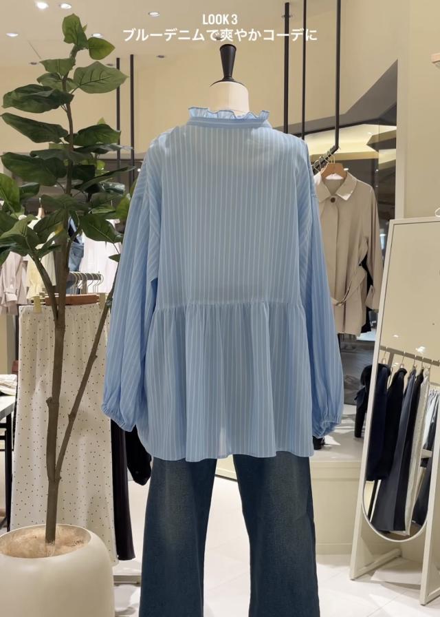 お着軽シャツシリーズ フリルカラーシアーペプラムブラウス/接触冷感・通気性