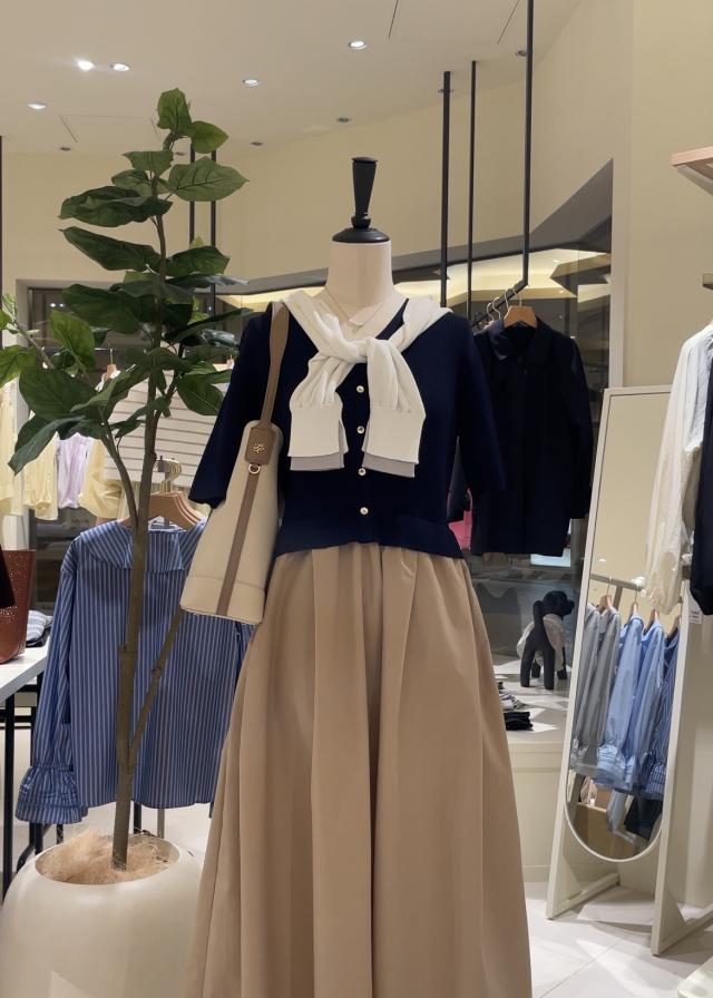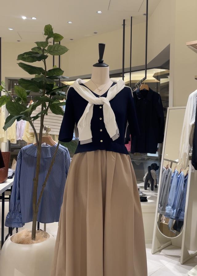 薄手で、程よく体にフィットするカーディガンです。