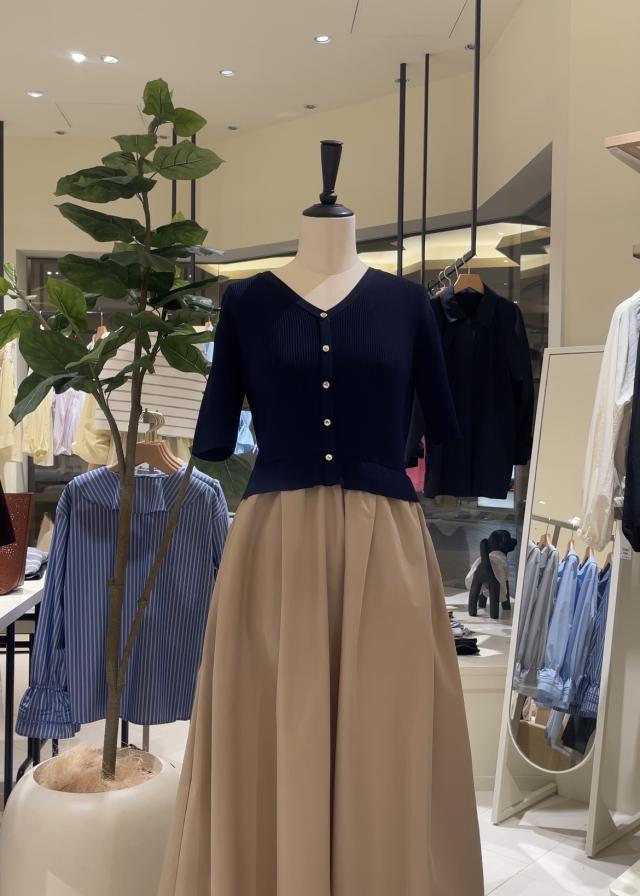 メタル釦布帛ドッキングハーフスリーブニットワンピース