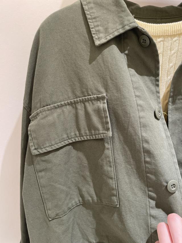 程よく厚手のコットン生地で、安心感のある着用感です。秋でもお使いいただけます。