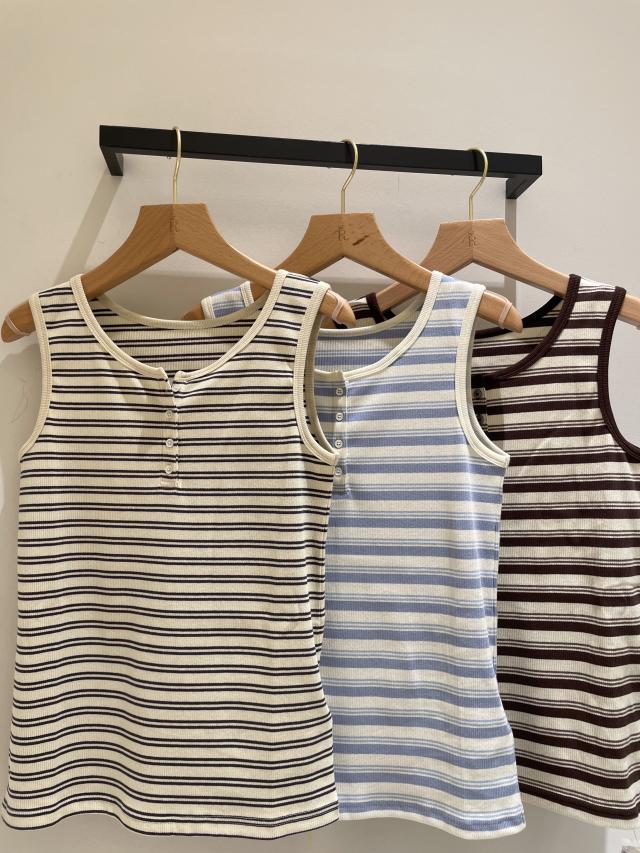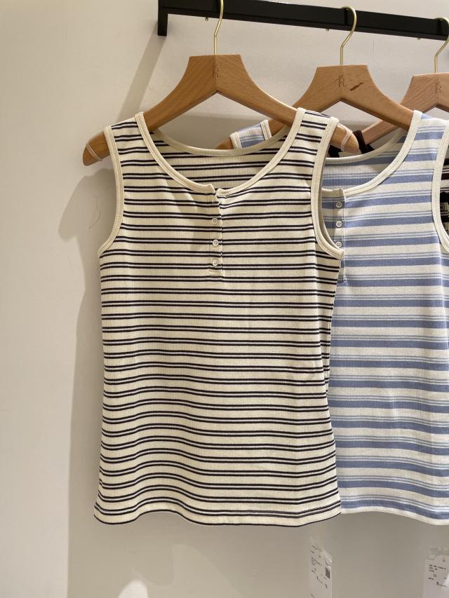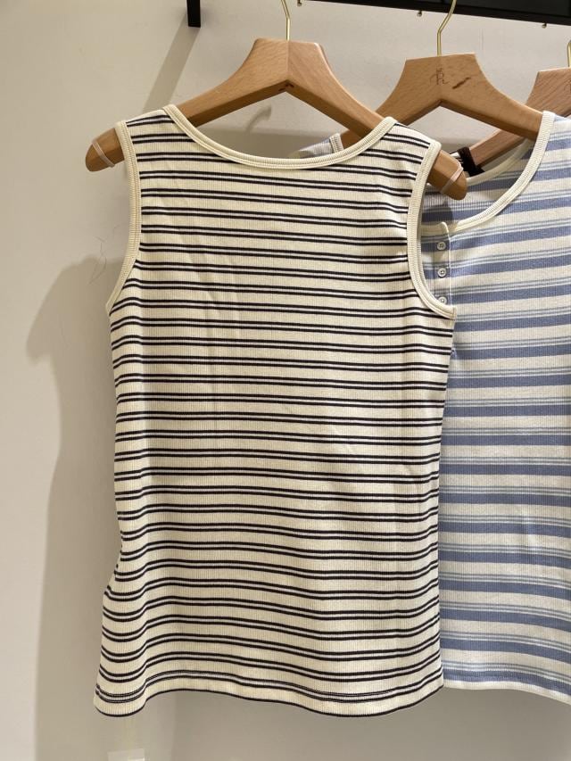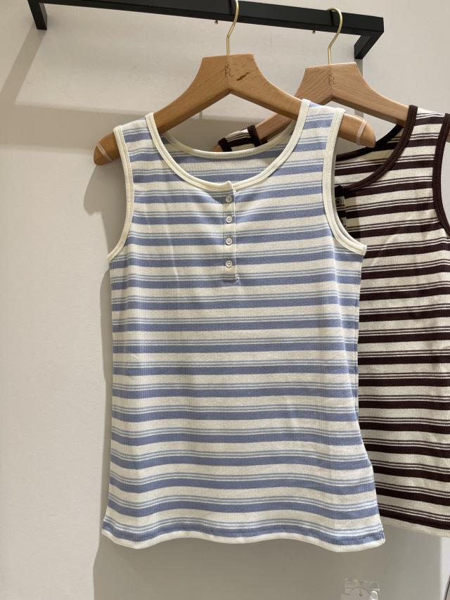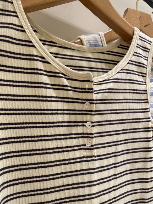 マルチボーダーヘンリーネックタンクトップ
