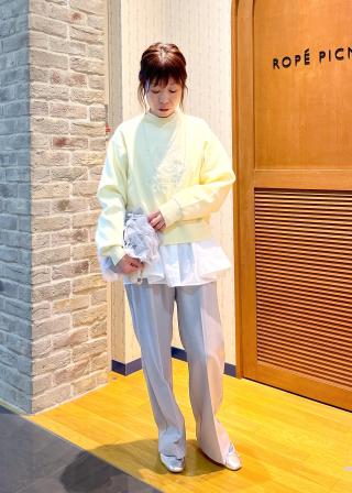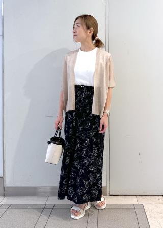 ・ボーダーや花柄など、柄物トップスにも馴染むデザイン。
