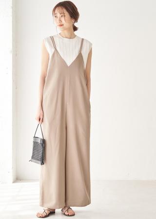 ・二重ストラップが大人っぽい、キャミソール型オールインワン。