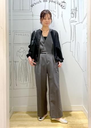 着丈は身長165cmだとやや短いですが、ペタンコで合わせるとバランス良く着れます。