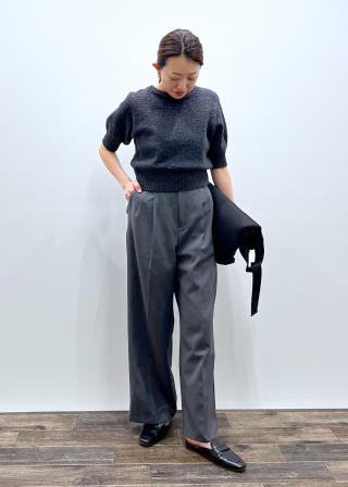 ・パンツラインはややワイドで、センタークリース入りのマスキュリンなデザイン。