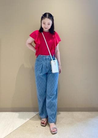 細めなベルトとゴールドの金具がポイントになりコーデに馴染みやすいスッキリバッグはキレイめな日でも合わせやすいです◎