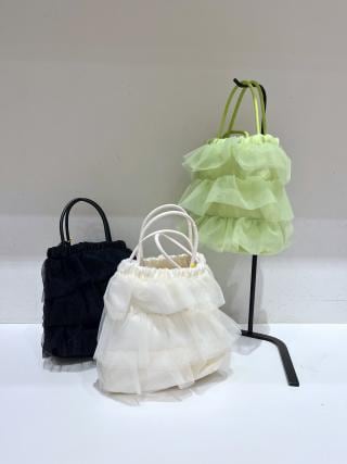 チュールを重ねたフリルデザインのミニバッグ。
