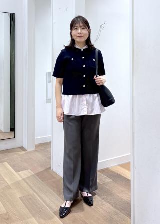 ・シアー素材のトップスや落ち感のあるワイドパンツと合わせた、やわらかな大人スタイルもおすすめ。
