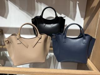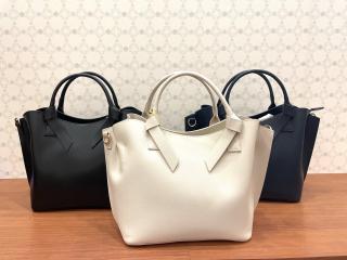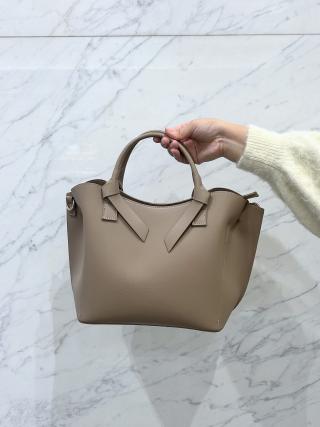 ・サイドに寄せたタックと、ハンドルのノットデザインが特徴。