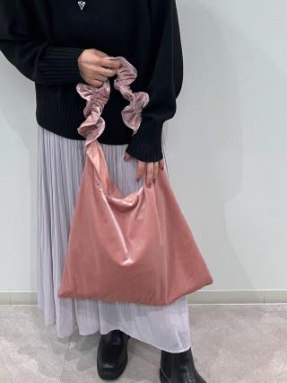 ベロア素材の持ち手が可愛いフリルバッグです。