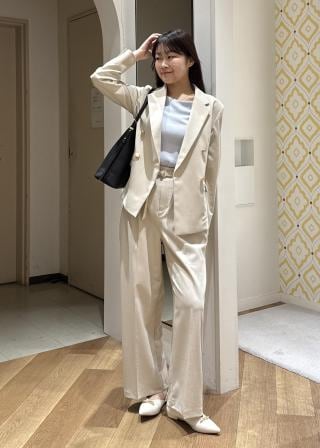 ・バッグのレザー見え素材がきれいめな印象を与えるので、オフィスカジュアル/通勤やセレモニースタイルに。