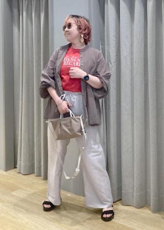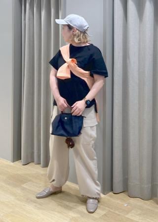 光沢のある素材でカジュアルすぎない為、綺麗めなスタイリングにもマッチします。