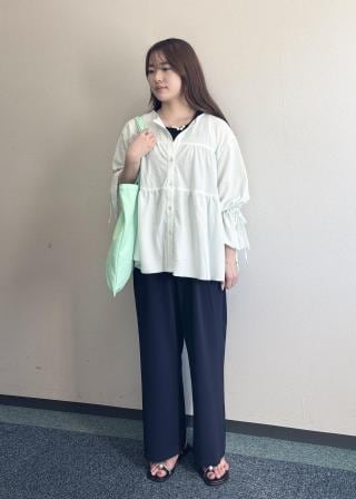 ・ジョージアグリーン(33)は生成りのワンピースやリネンパンツに合わせると、季節感のある柔らかい印象に。