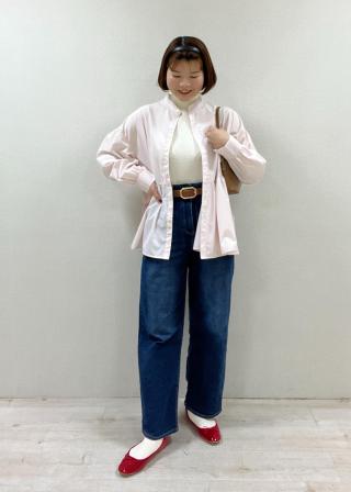 太めのベルトでウエストまわりがスッキリ見えアクセントになります。