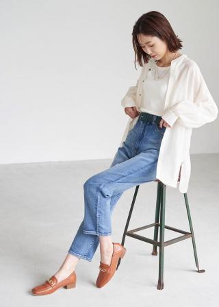 ・コーディネートにメリハリを効かせる、幅広のレザー調ベルト。