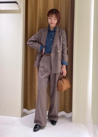 ・ワイドパンツやテーパードパンツに合わせて、きちんと感のある大人カジュアルが完成。