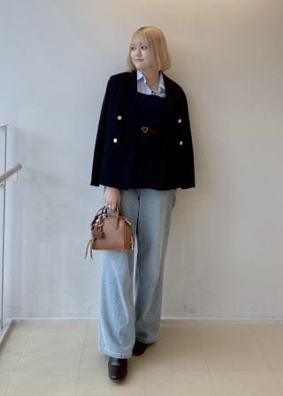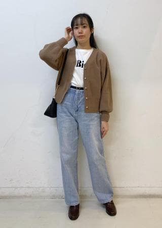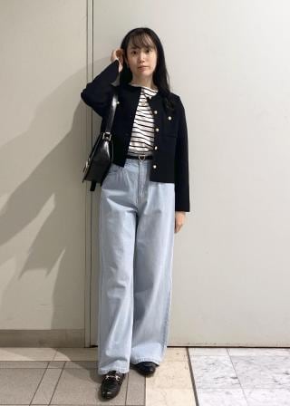 ・ハイウエストデニムに合わせて、トレンド感のある甘辛コーデに。