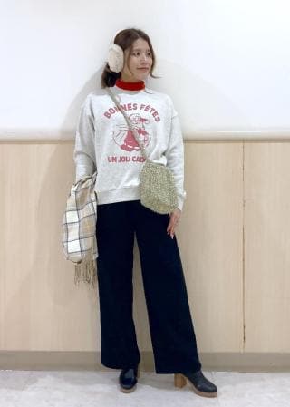 リボン柄の刺繍は主張し過ぎず可愛く、なんと言ってもチャコールの色味が上品で綺麗めのコートにも合う気がします。私は耳当てが大好きなので…カジュアルコーデにも綺麗めコーデにも…寒い日は毎回つけてヘビロテ中です♪