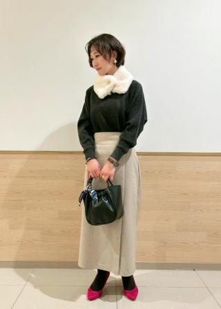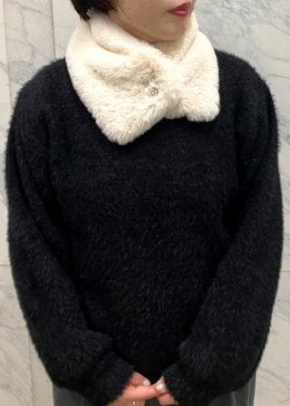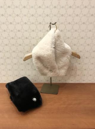 ・ビジューボタンが華やかさを添えるフェイクファーティペット。
