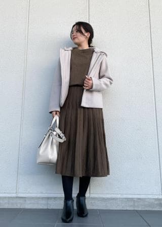 ・カットソーやシャツなどにプラスして、秋の先取りコーディネートに。