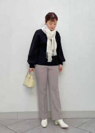 ・シャツやニットに肩掛けして、室内の防寒対策に。