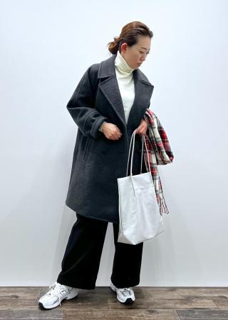 ウール混ですがチクチク感ほとんどありません。チェック柄がコーデのポイントになります。