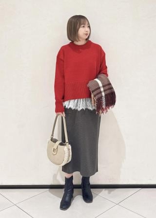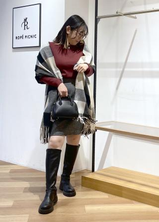 ・アウターには、マフラーのようにボリューミーに首元に巻くと◎。