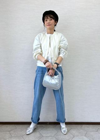 ・重めなアウターが多い人は、アイボリーで軽さをプラスして。