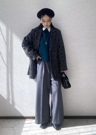 ・ベレー帽の下からふんわりウェーブが見えると、抜け感があって柔らかい印象に。