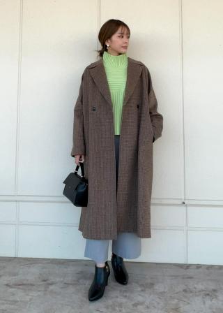 サイズ感:オーバーサイズでゆったりしているので、厚手のニットも着込めます。着丈は脛が隠れるぐらいで、袖丈は手の甲が隠れる長さです。