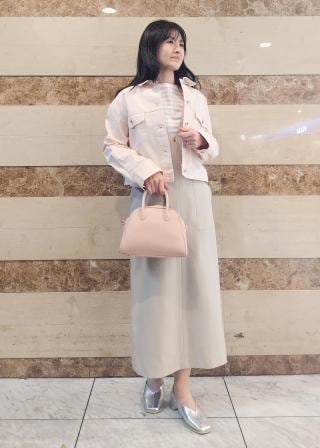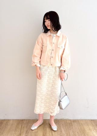 ピンク色のデニムジャケットなので、一気に春らしくなります。