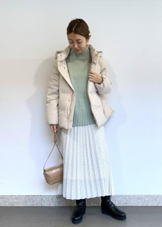 また中わたもダウン80%フェザー20%と暖かく、コーディネートもデニムにもスカートにも合わせやすいのでお気に入りのダウンです。