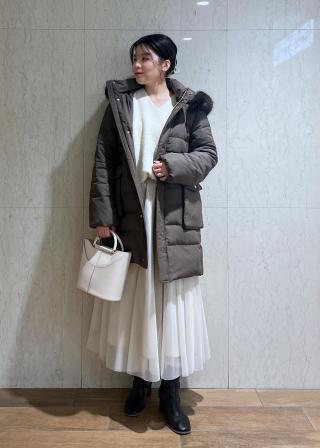 ・きれいめな装いにも合わせやすい上品なダウンコートは通勤にも活躍。