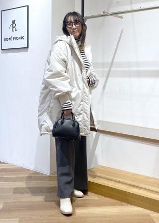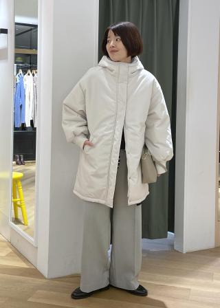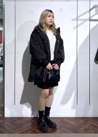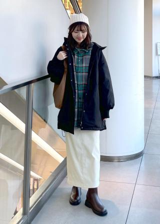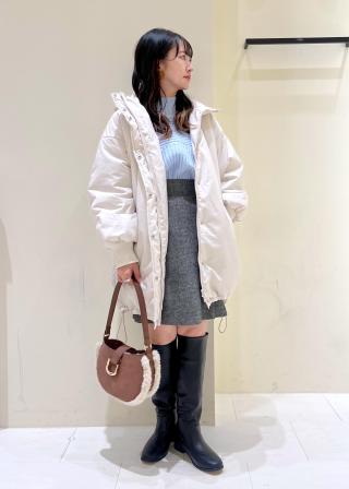 ・フェミニンなマーメイドスカートと合わせれば、ボリュームアウターに女性らしいしなやかさが加わり、大人の冬スタイルに。