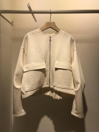 ・凹凸のある表面感がポイントの膨れジャカードを用いたジップアップブルゾン。
